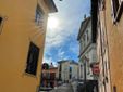 Piazza Mazzini transennata e gru al lavoro oggi a Caronno Varesino.