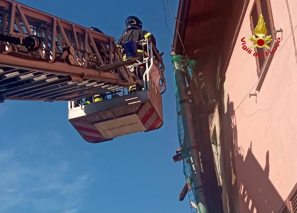 FOTO. Crollano in strada tegole e grondaia, a Somma intervengono i vigili del fuoco
