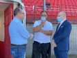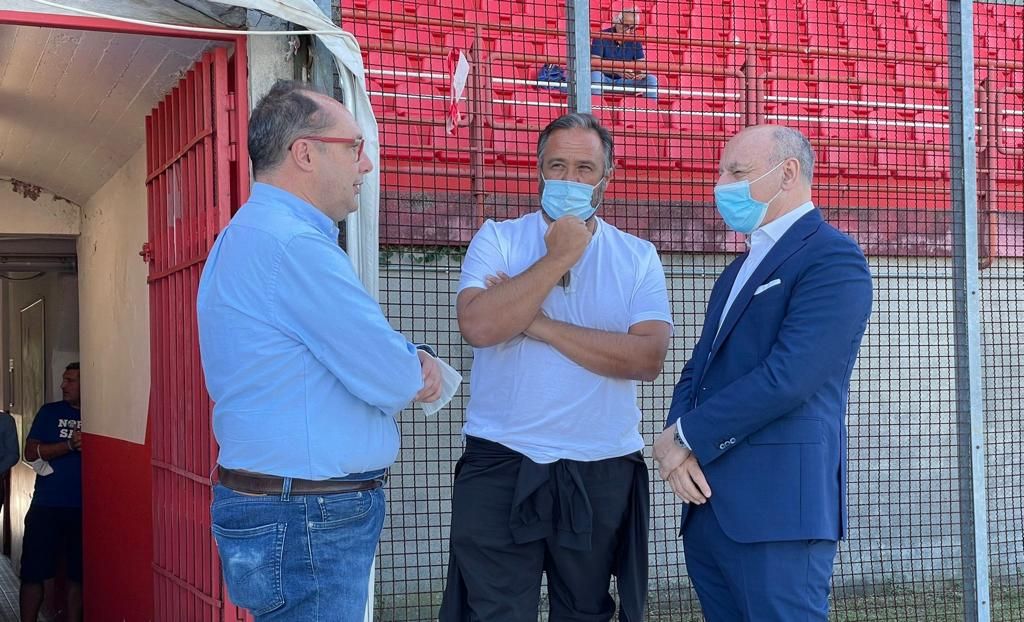 E' già presente in quello che fu il suo stadio, e da cui prese il volo nel grande calcio a metà anni Ottanta, l'amministratore delegato dell'inter, il varesino Beppe Marotta, che è fuori dal tunnel della tribuna centrale a colloquio con il presidente biancorosso Stefano Amirante e con Antonio Rosati.