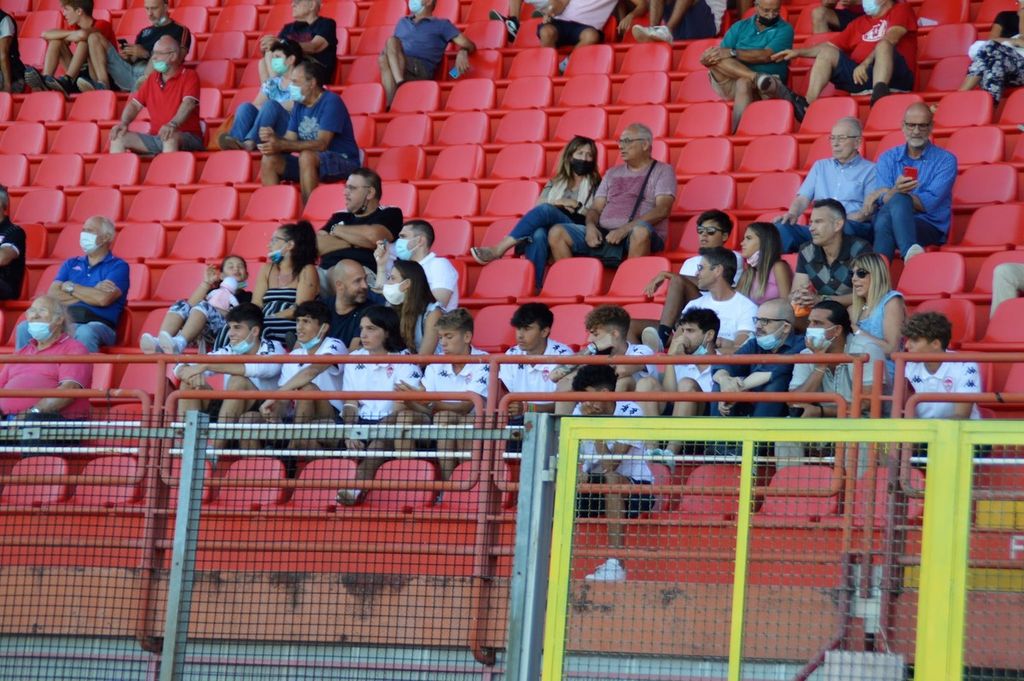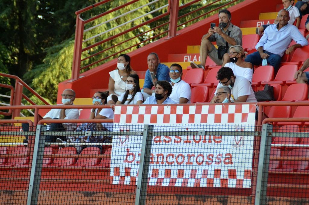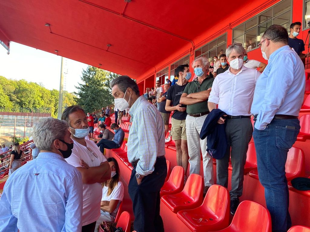 Tra i cinquecento applausi (l'uscita dal campo di Mamah, autore di una grande prova e di un gol con esultanza in piroetta che vedete nella gallery, è stata salutata da un'ovazione, così come l'entrata in campo di Disabato) c'erano anche quelli del sindaco Davide Galimberti e del candidato del centrodestra alle prossime elezioni di ottobre, Matteo Bianchi, arrivato allo stadio accompagnato da Alberto Nicora. Galimberti e Bianchi si sono salutati all'intervallo: il sindaco ha seguito il secondo tempo insieme al presidente biancorosso Amirante mentre Bianchi si è seduto accanto al governatore Fontana.