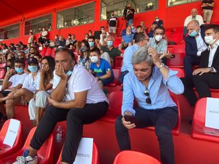 Tra i cinquecento applausi (l'uscita dal campo di Mamah, autore di una grande prova e di un gol con esultanza in piroetta che vedete nella gallery, è stata salutata da un'ovazione, così come l'entrata in campo di Disabato) c'erano anche quelli del sindaco Davide Galimberti e del candidato del centrodestra alle prossime elezioni di ottobre, Matteo Bianchi, arrivato allo stadio accompagnato da Alberto Nicora. Galimberti e Bianchi si sono salutati all'intervallo: il sindaco ha seguito il secondo tempo insieme al presidente biancorosso Amirante mentre Bianchi si è seduto accanto al governatore Fontana.