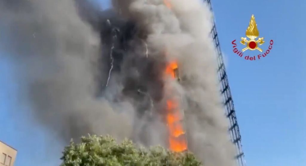 Grattacielo in fiamme a Milano, la gigantesca colonna di fumo visibile dal Sacro Monte