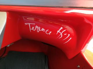 Si tratta di una copia della speciale auto, targata Roma come l'originale che è stata da poco autografata da Terence Hill, ora celebre per la sua interpretazione del prete investigatore don Matteo.
