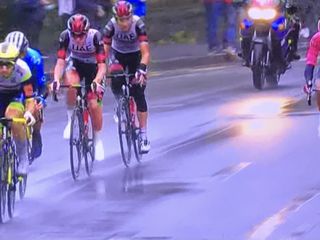 Ultime battute della salita di Casciago. Sempre il duo De Marchi- Formolo in testa. Ma da dietro si avvicinano gli inseguitori.