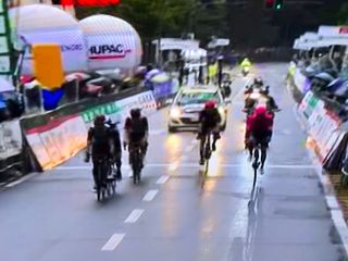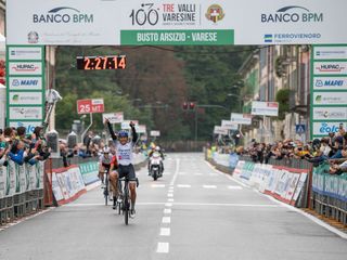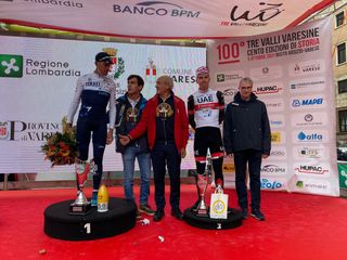 Iniziata l'ultima salita, quella di Bobbiate. I due italiani procedono in testa con circa mezzo minuto di vantaggio sul primo gruppo di inseguitori.