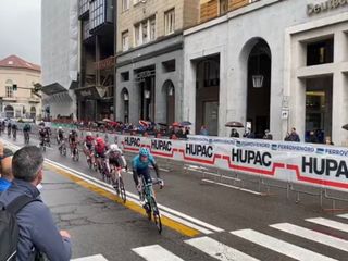 Un minuto di vantaggio sul gruppo da parte del drappello in testa alla corsa, ridottosi a sette componenti. Si tratta di Erik Fetter (Eolo-Kometa), Davide Formolo, Tadej Pogacar (UAE Team Emirates), Nelson Oliveira (Movistar), Lorenzo Rota (Intermarché-Wanty Gobert), Rigoberto Uran (EF Education Nippo) e Tim Wellens (Lotto-Soudal)