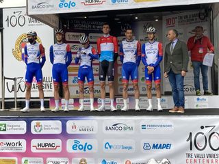 Il presidente e fondatore di Eolo, Luca Spada ha fatto da padrino alla presentazione della squadra “azzurra” sul palco allestito al villaggio di partenza in via Gran San Bernardo, assieme al sindaco Emanuele Antonelli e a Laura Rogora, che hanno vissuto un'altra mattinata di festa (e di sport) dopo il trionfo elettorale di ieri. Anche Luca Spada sogna un regalo dai suoi corridori nella gara di casa. Considerando la start list non sarà impresa facile, in ogni caso il superpremio sarebbe garantito.