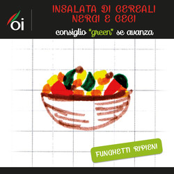 Procedimento 1. Fate cuocere i cereali in abbondante acqua salata. 2. Scolateli e lasciateli raffreddare. 3. Lavate e tagliate i Nergi a piccoli spicchi. 4. Lavate e tagliate i pomodorini a piccoli spicchi. 5. Unite i cereali con i tocchetti Nergi, quelli di pomodorini e con i ceci, quindi mescolate il tutto e condite con l’olio evo, sale, pepe e le foglie di basilico.