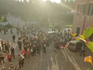 E poi la marcia, mentre in Comune arrivano anche gli alleati delle altre otto liste sostenitrici. Galimberti giunge in via Sacco e per prima cosa saluta i dipendenti comunali. I giornalisti lo aspettano in cima al cortile d’onore, dove i cancelli si aprono sulla maestosità dei Giardini, ma con uno scatto repentino il nuovo vecchio sindaco dribbla telecamere e taccuini e corre verso lo scalone, poi verso il suo ufficio. La transumanza di penne e microfoni allora lo segue e si piazza in sala Matrimoni. Ad aspettarlo.