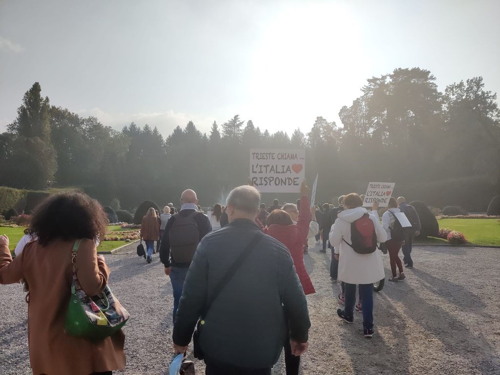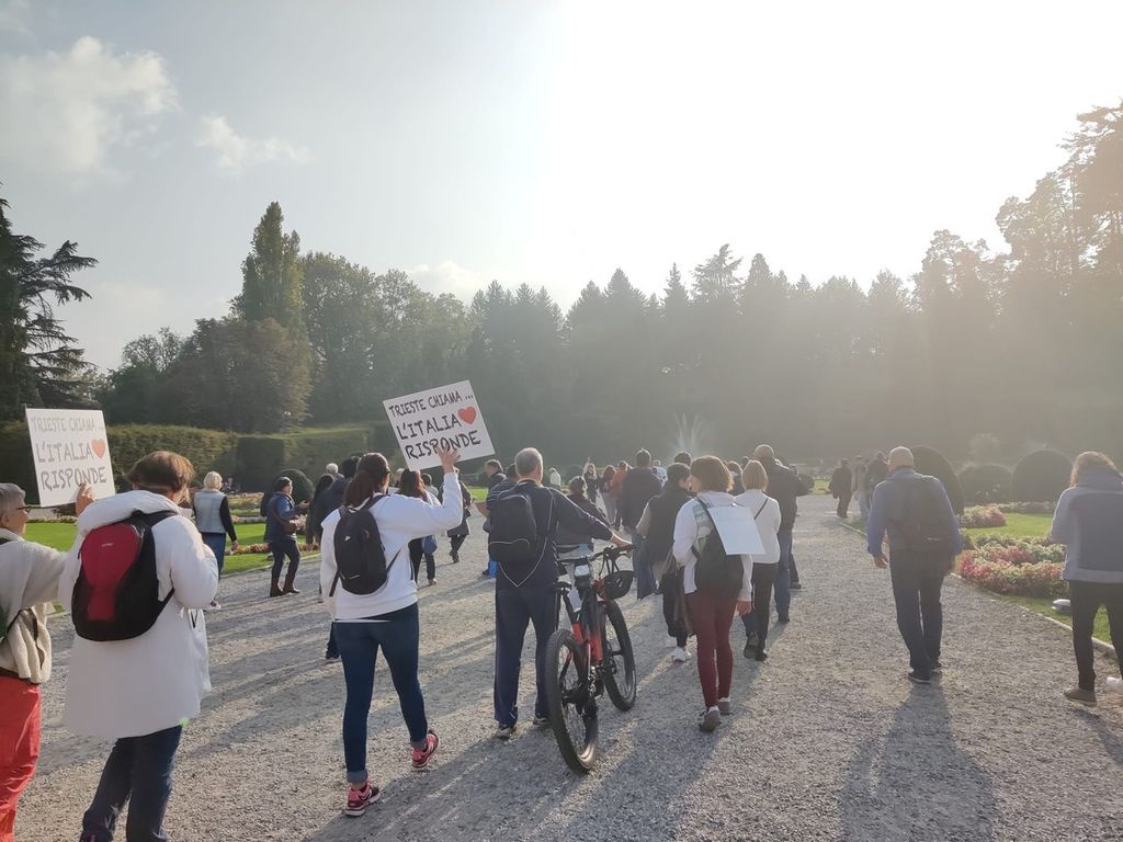 Al grido di “Libertà”, i manifestanti hanno attraversato via Marcobi, via Sacco, per poi disporsi in cerchio intorno alla fontana dei giardini pubblici. Hanno fatto l’Om ed esposto i loro cartelli in solidarietà a Trieste. Un corteo e una manifestazione ordinata, a cui hanno preso parte anche i bambini. “Siamo un gruppo di liberi cittadini che si sono uniti perché sono molte le domande senza risposta che ci accomunano – dicono di loro - Un'unica bandiera, un'unica Nazione, una sola Libertà senza compromessi”.