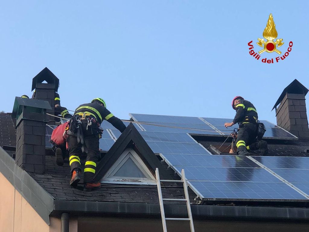Spazzacamino bloccato sul tetto, lo salvano i vigili del fuoco