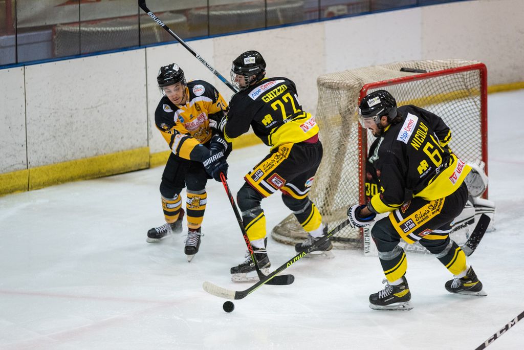 Al Varese non possiamo dire nulla perché la differenza con il Valdifiemme non sta in pista ma fuori, e cioè nell'impossibilità economica di avere tesserato almeno uno straniero o, certamente, un attaccante davanti alla gabbia avversaria che, su 5 occasioni, un paio le butti dentro a occhi chiusi. Manca poi forse anche qualcosa altrove, non diciamo in porta perché sarebbe troppo facile rimpiangere Tura (Muraro nel Varese ci sta, così come Basraoui che è infortunato: sono giovani e se non crescono e diventano grandi qui, dove dovrebbero farlo?), ma se pensiamo soltanto a Ilic, per dire, la sensazione che la coperta sia un po' corta - non nei numeri della rosa ma nel valore - non si può cancellare. Soprattutto vedendo Edoardo Raimondi in tribuna a tifare giallonero: quel "quid" vincente nei momenti che pesano, al di là di chi sicuramente continua a possederlo (Marcello Borghi ha segnato un gol bellissimo, di pura classe e instinto killer), Edo lo possiede a occhi chiusi. E sa trasmetterlo.