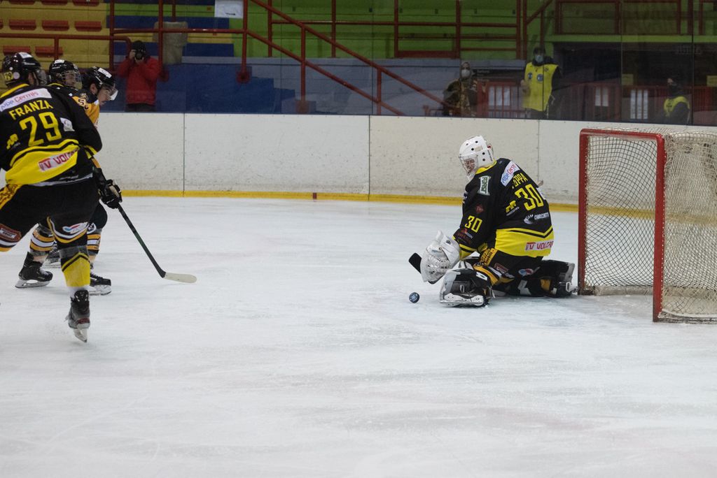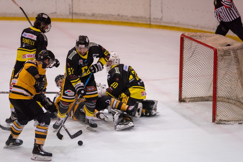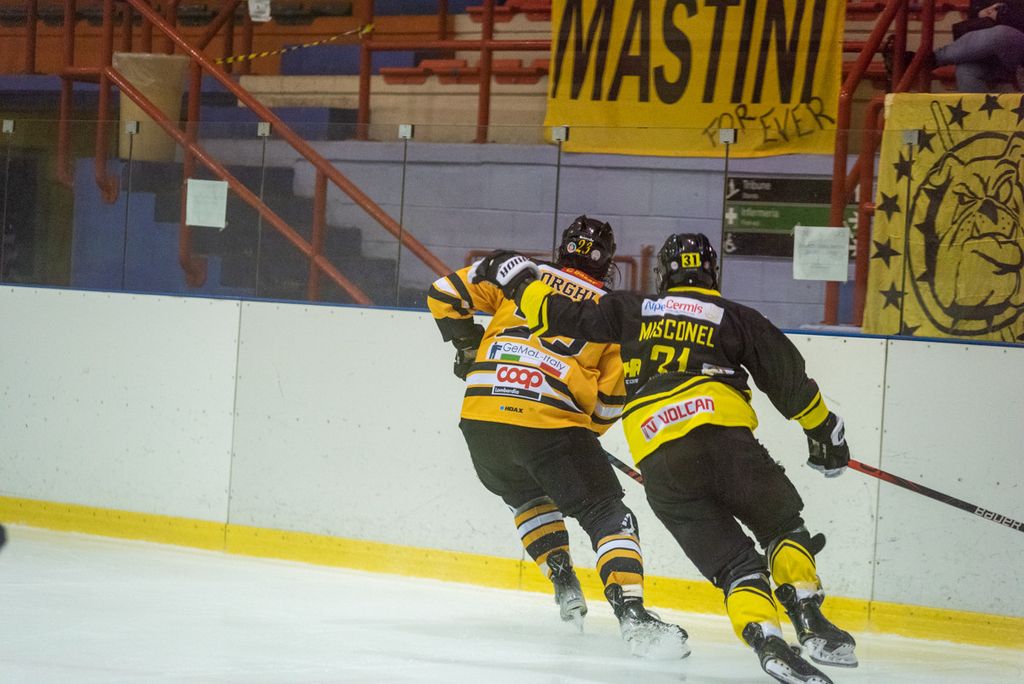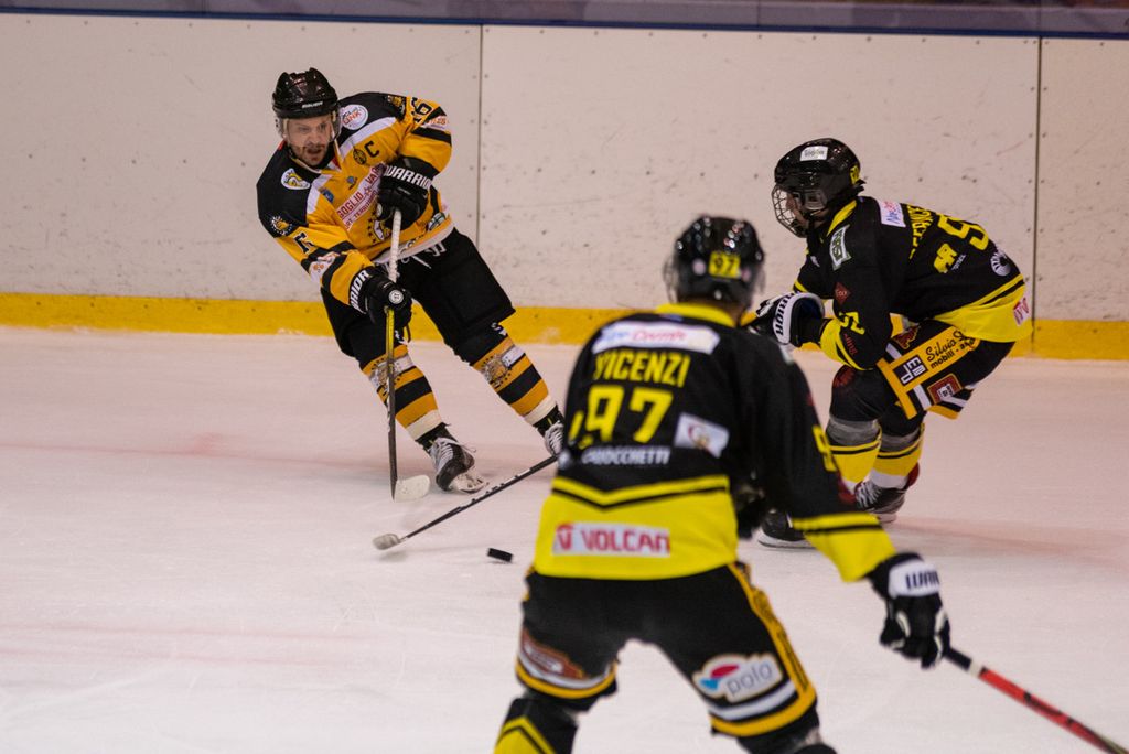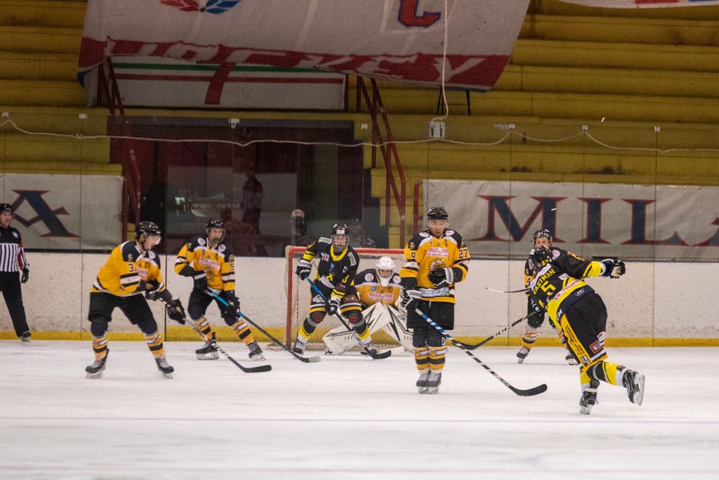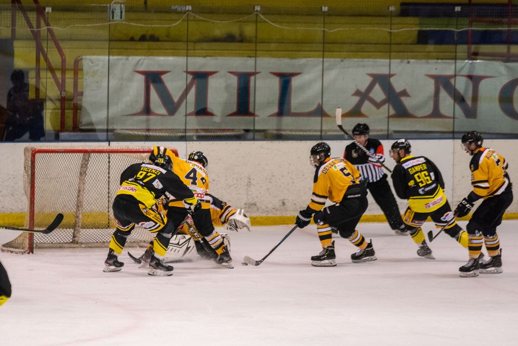 19' Michael Mazzacane davanti alla porta fallisce a colpo sicuro il pari, sul contropiede il mastino De Biasio si immola tuffandosi sul ghiaccio per evitare il colpo del 2-0: bellissima partita