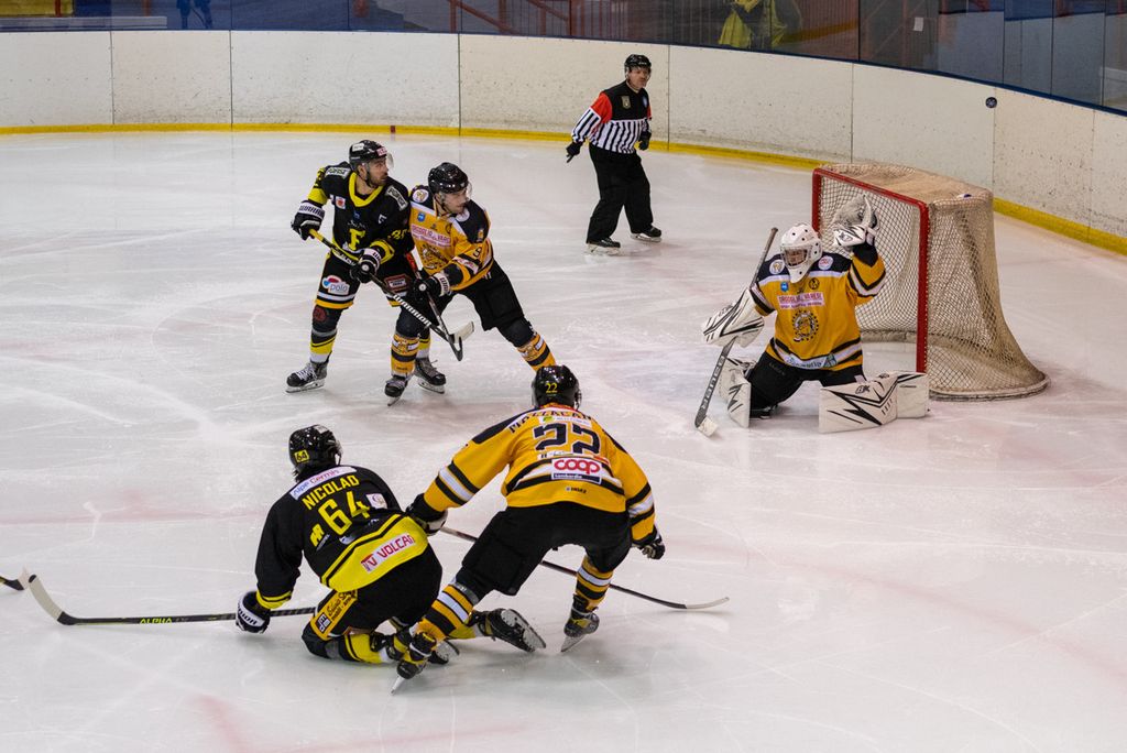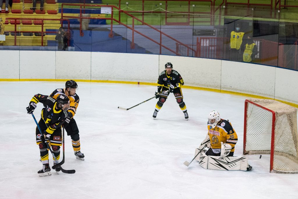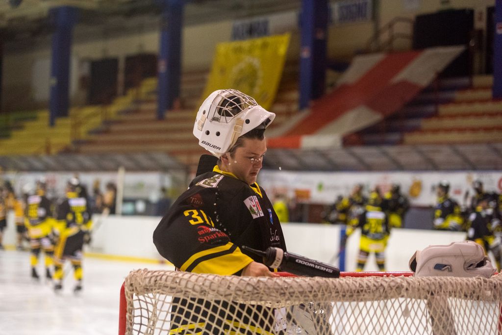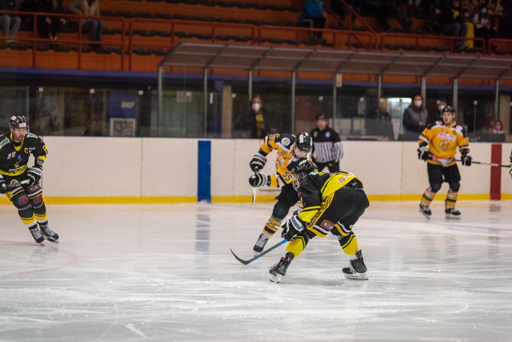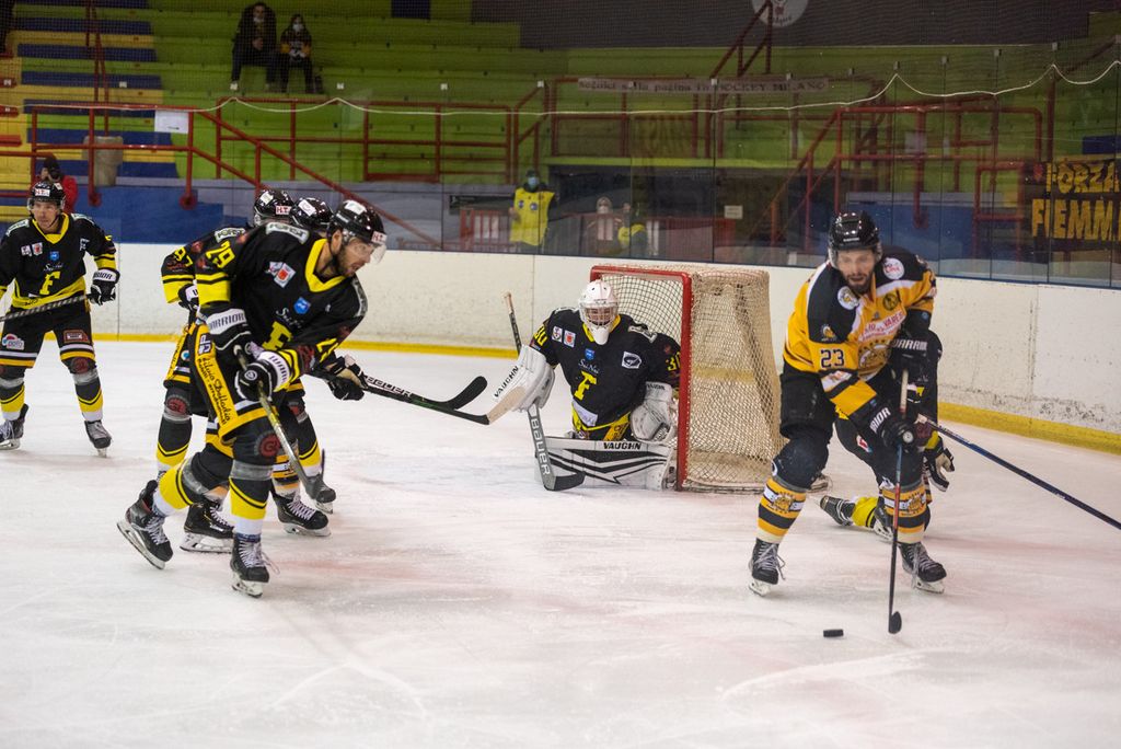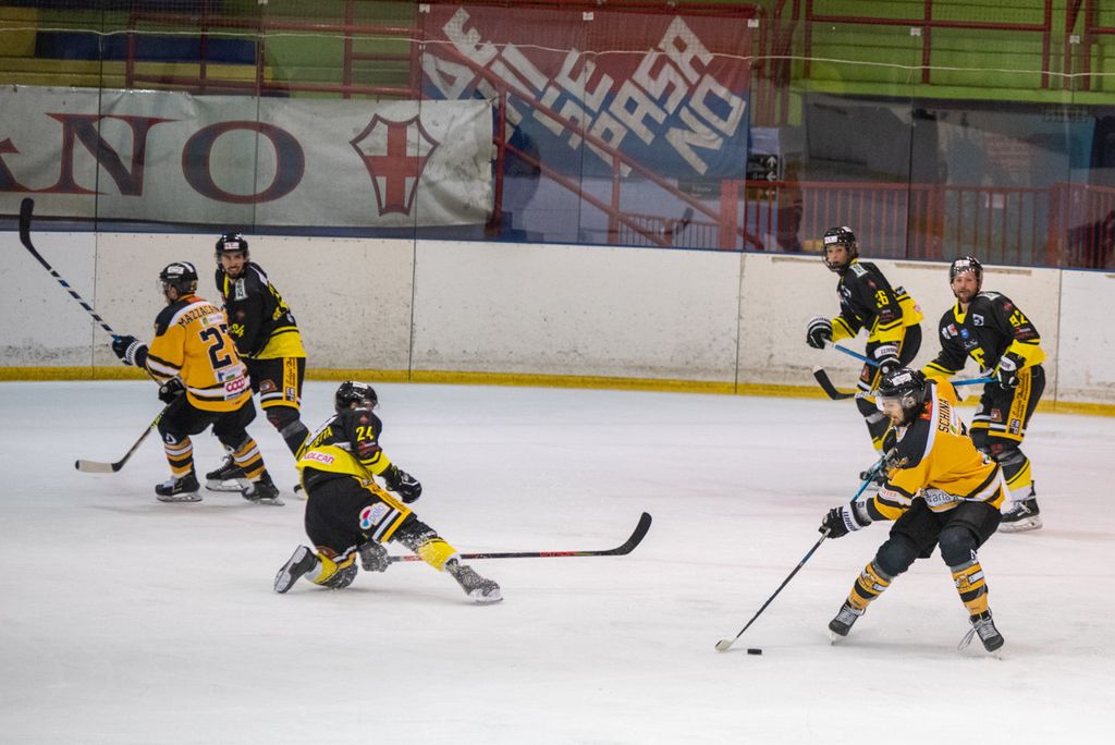 19' Michael Mazzacane davanti alla porta fallisce a colpo sicuro il pari, sul contropiede il mastino De Biasio si immola tuffandosi sul ghiaccio per evitare il colpo del 2-0: bellissima partita