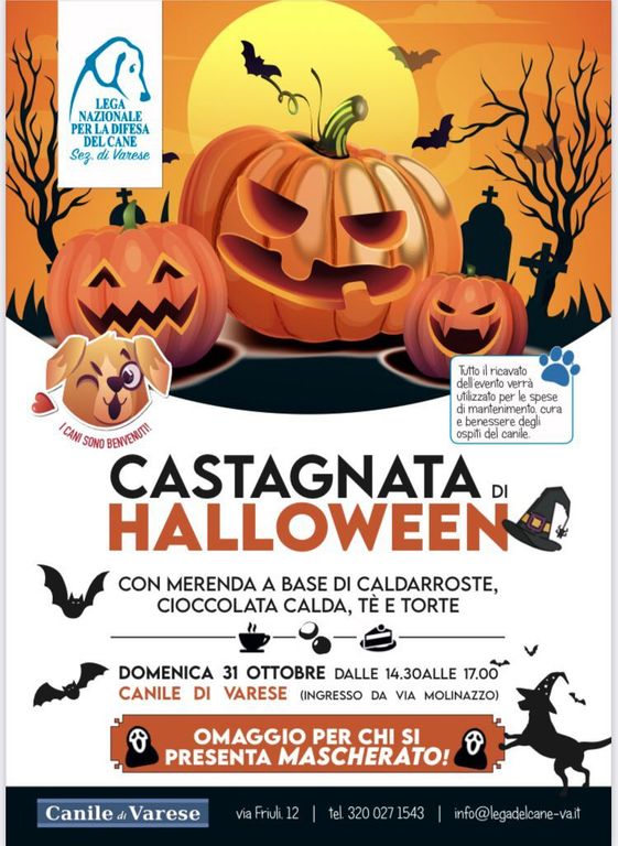 Un pomeriggio per festeggiare Halloween, divertirsi, gustare ottime caldarroste e dare una mano ai nostri amici a quattro zampe. E' quella in corso oggi dalle 14.30 alle 17 al Canile di Varese in via Molinazzo.
