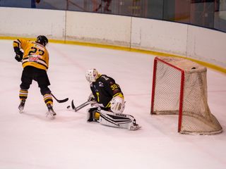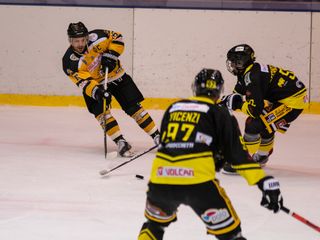 19' Michael Mazzacane davanti alla porta fallisce a colpo sicuro il pari, sul contropiede il mastino De Biasio si immola tuffandosi sul ghiaccio per evitare il colpo del 2-0: bellissima partita