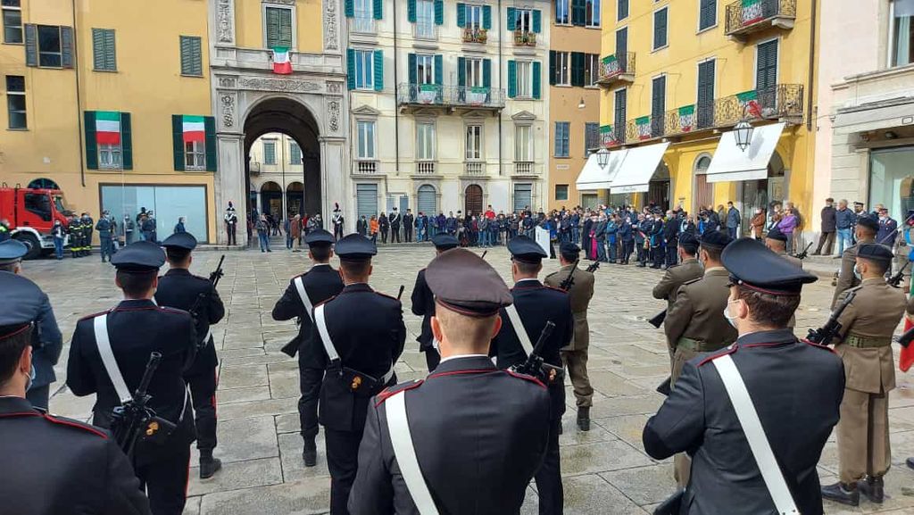 In una piazza sovrastata dai tricolori, davanti a monsignor Luigi Panighetti, prevosto di Varese, sono quindi state deposte le corone al Monumento ai Caduti dell'Arco Mera dopo gli interventi del prefetto, Dario Caputo, che ha letto il messaggio del presidente della Repubblica, Sergio Mattarella, e di quelli del sindaco, Davide Galimberti, e del presidente della Provincia Emanuele Antonelli.