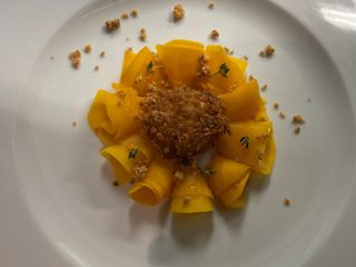 Non sarà quindi una sorpresa se l’ossobuco verrà brasato sottovuoto per 14 ore (la guancia addirittura per 24) a 68 gradi di temperatura, sfruttando una tecnica delicata e necessaria a mantenere inalterate le qualità della carne. Oppure che la zucca - uno dei tanti prodotti che compariranno su un menu che verrà cambiato ogni mese e mezzo, seguendo il ritmo delle stagioni - verrà presentata come un carpaccio sottile (inondata dalla cremosità di un tuorlo d’uovo fritto, solo da rompere con una forchetta) o dentro a un bottone di pasta fresca su un fondo di cottura fatto dell’estrazione della zucca stessa e condito all’orientale. E che tra i dessert - insieme a un inedito omaggio al Dolce Varese - ci saranno altri ossobuchi, stavolta di panna cotta con ripieno di un gel ai frutti rossi e accanto a un sablè al cacao.