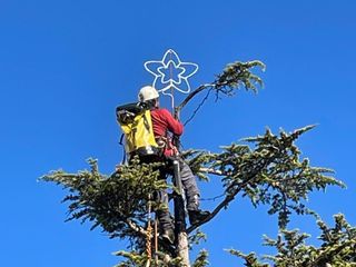 Nella gallery l'allestimento in corso ai Giardini e quello del Sacro Monte a cura del "Gruppo Lucine" sostenuto da molti amici tra cui la Fito-Consult di Daniele Zanzi che ha spedito un "inviato speciale" sul grande albero davanti al Mosè per aiutare nella posa di decorazioni e luci.