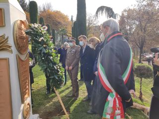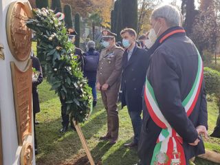 Alla presenze delle massime autorità civili e militari, a partire dal prefetto Dario Caputo e dal sindaco Davide Galimberti, ci si è ritrovati questa mattina davanti al monumento realizzato da Alexandra Bacchetta e al cui finanziamento ha contribuito anche la famiglia Belli. «È un'incitazione a donarsi senza remore e senza misure - ha detto Alexandra Bacchetta - noi siamo l'amore: viviamolo in peno come questi uomini hanno saputo fare».