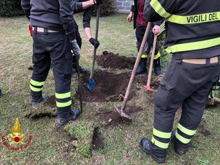 Successivamente è stato necessario effettuare uno scavo nel giardino dello stabile fino a liberare il gatto che è stato salvato e riconsegnato alla proprietaria.