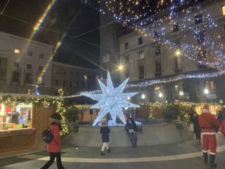 Prima è stata la volta del grande albero di piazza Monte Grappa, che è stato illuminato per la prima volta intorno alle 18, accompagnato da un breve concerto della formazione Nuova Busto Musica. Accanto, intorno alla fontana, ad animarsi anche il mercatino natalizio, anch'esso "coperto" da un cielo stellato di lucine gialle blu e da grandi stelle color cristallo.