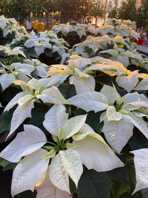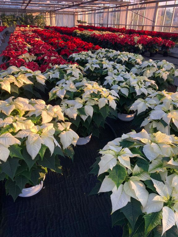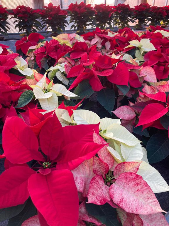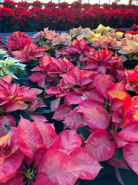 Nella storica Floricoltura Pozzi di via Monte Generoso a Bizzozero ci immergiamo in un abbraccio di colori a perdita d'occhio che vanno dal classicissimo rosso al bianco, dal panna al rosa e al picasso ma anche alla varietà glitter (la vedete nella foto d'apertura tra le mani di Renato), che unisce tradizione e novità con quelle "glitterature" bianche irregolari sul fondo rosso delle foglie.
