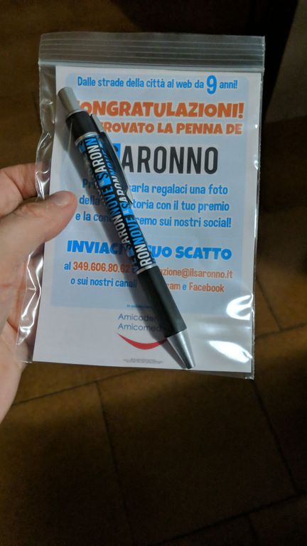 Il quotidiano online di Saronno ha chiesto a tutti coloro che rintracciano il regalo di condividere uno scatto del ritrovamento o dell’uso della penna.