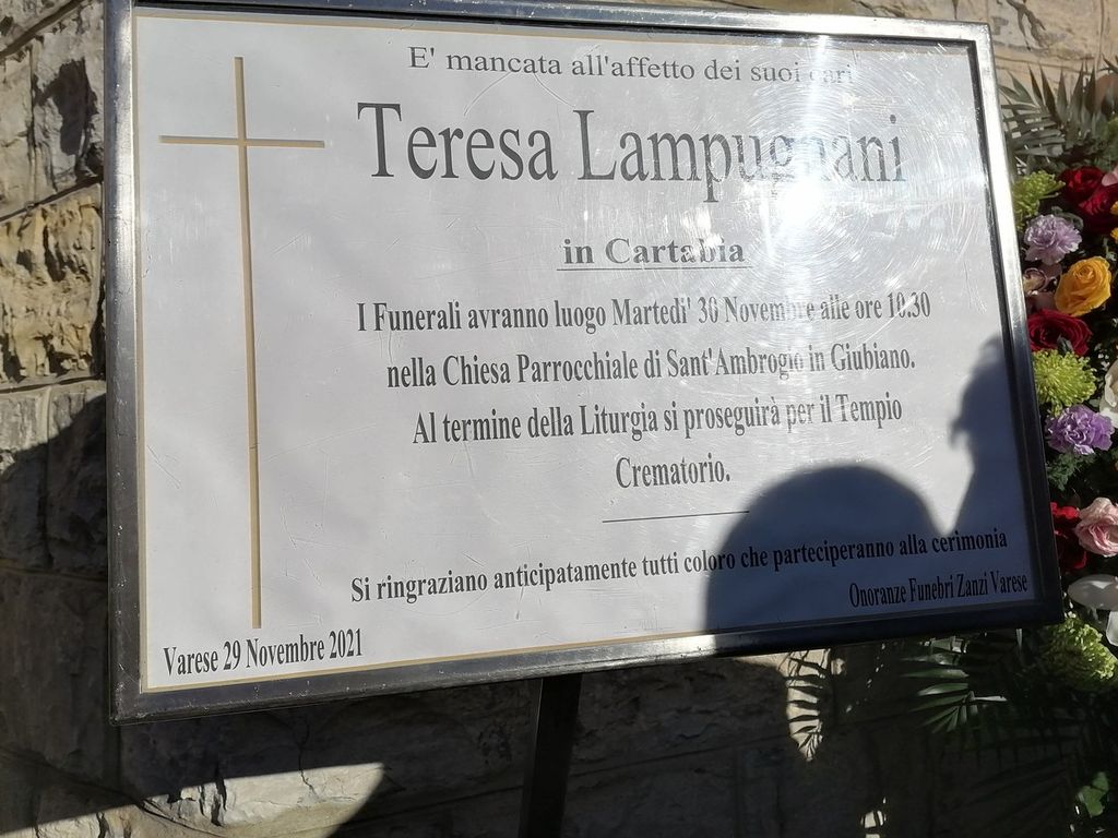 Alla celebrazione hanno partecipato il sindaco di Varese Davide Galimberti, il questore Michele Morelli, il comandante provinciale della guardia di finanza Crescenzo Sciaraffa e quello dei carabinieri Gianluca Piasentin. Molto toccante è stato il ricordo di padre Josè, amico di famiglia: «Giancarlo (il marito della signora Lampugnani ndr), ti ricordi quando questa estate in montagna mi hai raccontato di come tu e Teresa vi siete conosciuti, della macchina nuova, delle vacanze e della famiglia che avete costruito. Queste cose non vanno dimenticate perché sono momenti importanti, che vanno tramandati, poiché con la morte il nostro cuore non vuole che tutto vada perduto».