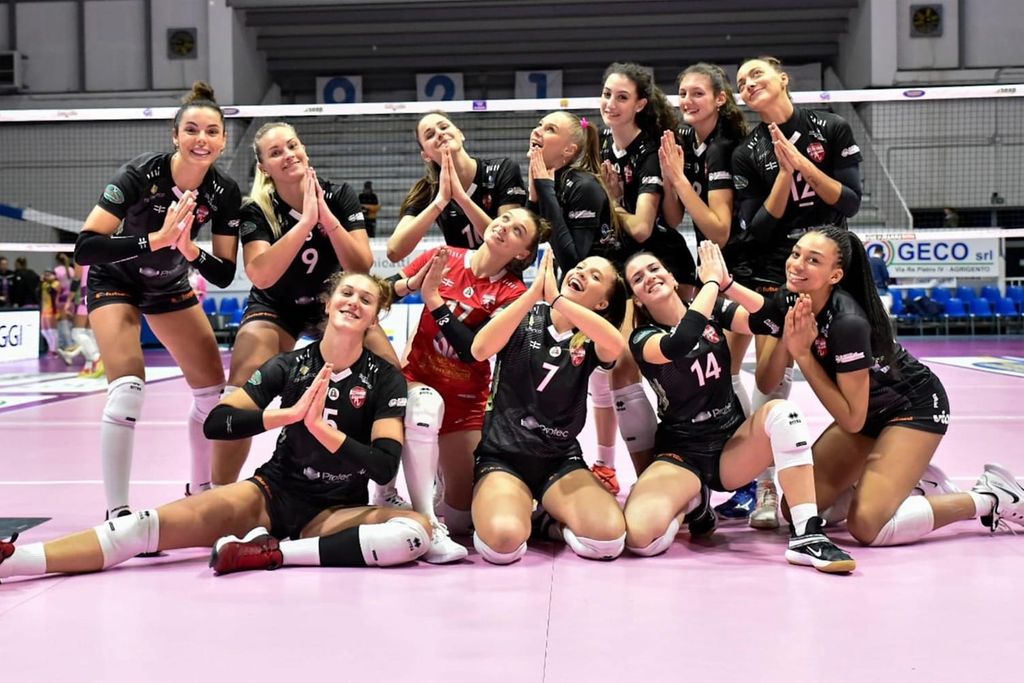 Un primo set che inizialmente sembrava combattuto, con le due squadre che si sono rincorse fino all’8 pari, quando un Angelina in splendida forma ha portato in vantaggio le sue (8-10). Ci pensa poi Sartori ad aumentare il distacco (8-12) portando al primo time out di Aragona, che però serve a poco, infatti, le Cocche mantengono il +4 fino al secondo time out di Aragona (12-18) che ha lo stesso risultato del primo. Con Bici in battuta le ragazze di coach Lucchini arrivano al 12-20 grazie a un ace di quest’ultima. Ci pensa poi Angelina a chiudere il set (14-25). Il secondo set parte sull’onda di chiusura del primo, con le Cocche che si portano rapidamente sull’1-5. Anche in questo caso, il time out chiamato dal coach dell’Aragona sul 4-10 serve a poco, infatti subito dopo un errore delle sue e una grandissima Landucci (in sostituzione a Lualdi che si è operata al scorsa settimana) portano le Cocche a +8 (4-12).