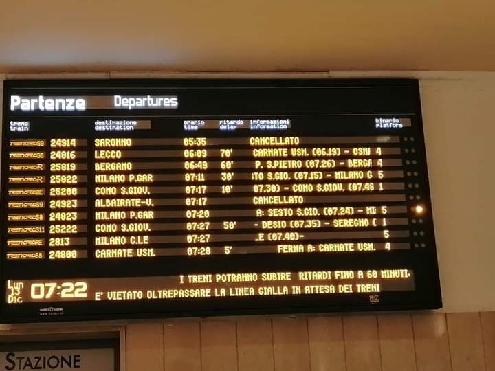 Stamane all'alba un guasto alla linea elettrica nella stazione di Milano Certosa ha portato a ritardi dei treni su alcune linee.