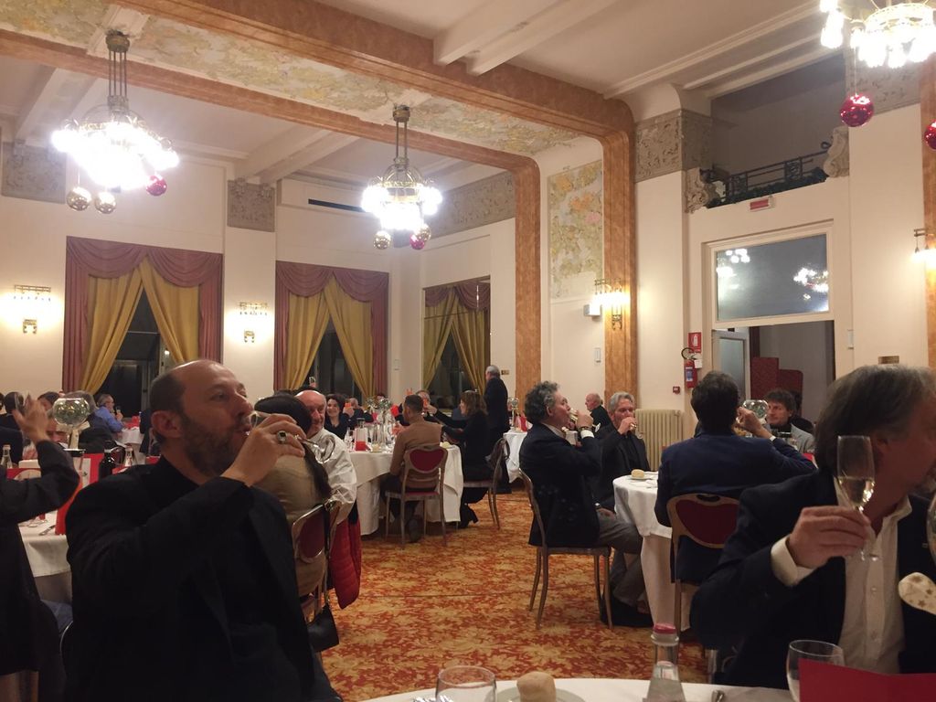 La cena di Natale è stata l’occasione per consegnare loro dei premi da parte del direttivo. Affiancata dalla vicepresidente Francesca De Tomasi, dal tesoriere Carlo Budelli e dal segretario Sergio Camisasca, la presidente Elena Brusa Pasquè ha omaggiato, oltre a Cazzola e Moretti, anche gli iscritti da 40 anni - Manuela Brusa Pasquè, Enzo Cantoni, Antonella Cassibba, Giovanni Imbriaco, Lino Lopez, Ettore Mocchetti, Maria Grazia Noris, Andrea Pellegatta, Andrea Piccinelli, Renzo Viganò -, che hanno ricevuto una spilla da appuntare alla giacca; e i neo-iscritti - erano presenti in 11: Ilaria Bianchi, Martina Brasca, Marco Colombo, Stefano Contini, Clara Gallazzi, Gioele Giudici, Innocenti Hembi, Tito Monestier, Fabrizio Palio, Danilo Torraco, Marco Zanini -, a cui è stato consegnato il loro timbro d’argento.