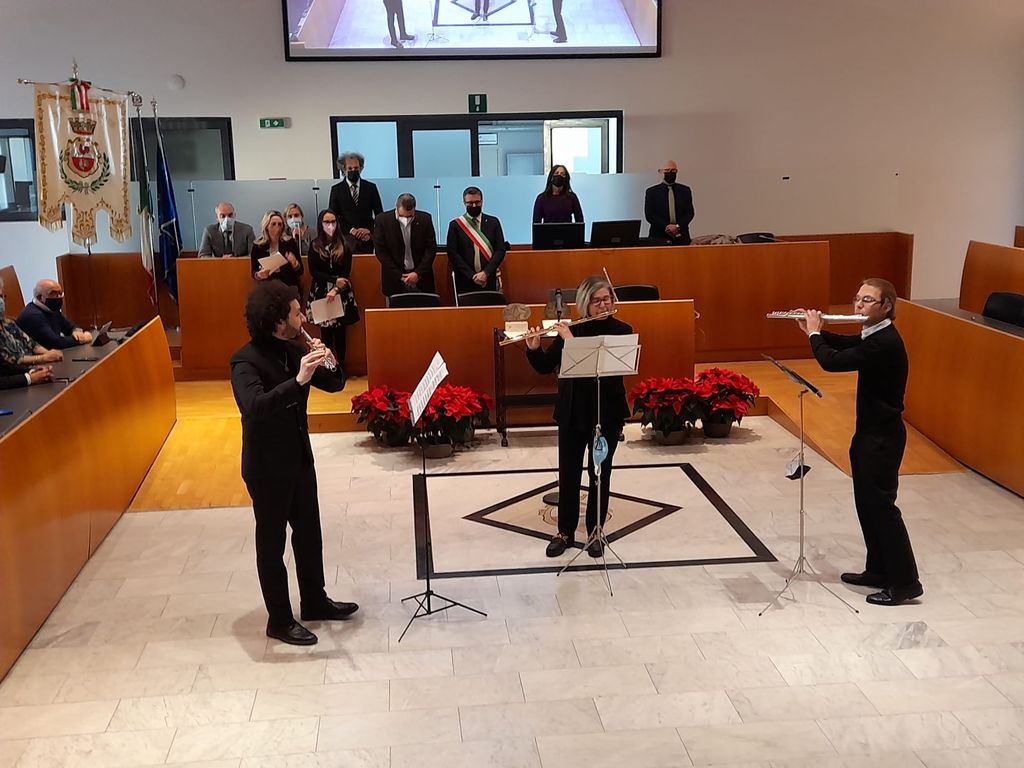 Consegne introdotte da un trio di flauti dell’Istituto musicale Puccini. Prima targa alla famiglia Fazzini, dell’omonima azienda, testa e cuore gallaratesi, struttura a Cardano al Campo dal 1976, eccellenza nel tessile per la casa e in generale del made in Italy. Maria Alberta, affiancata dai figli, ha ricordato i collaboratori e affermato: «Mi piacerebbe poter condividere questo premio con tutte le donne di Gallarate che stanno facendo scelte difficili come è capitato a me 30 anni fa».