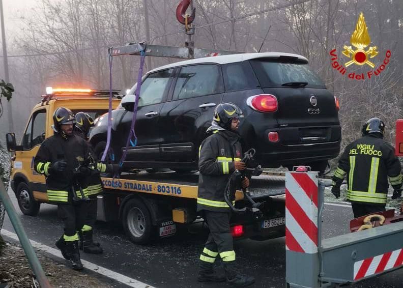 Momenti di paura questa mattina all'alba in via Pasubio. Per recuperare la macchina è stato necessario l'intervento dei vigili del fuoco di Ispra con un'autogrù