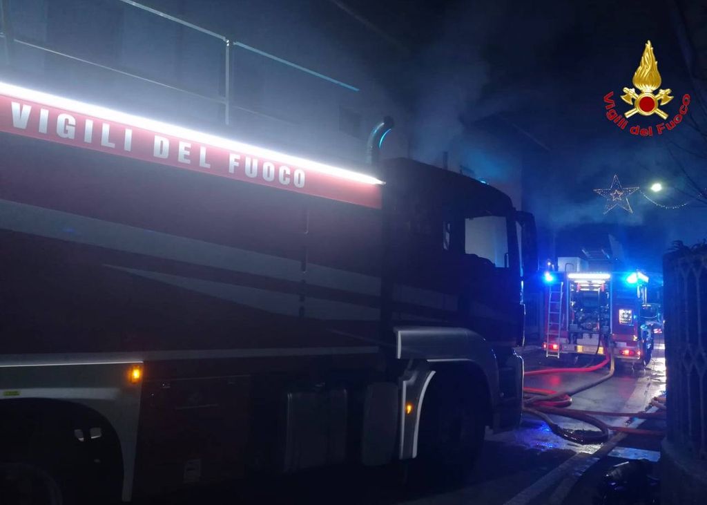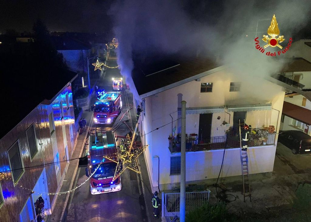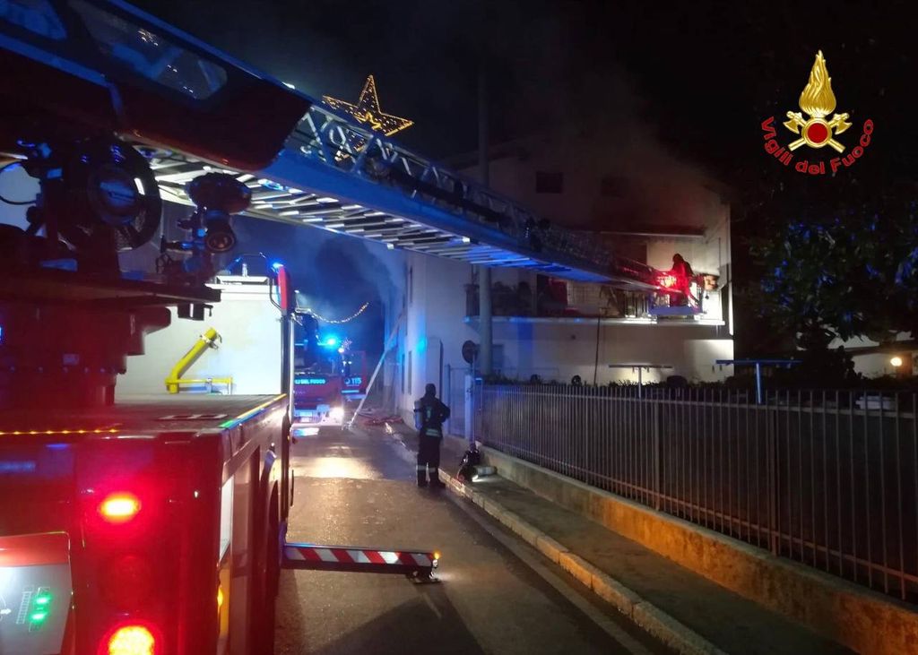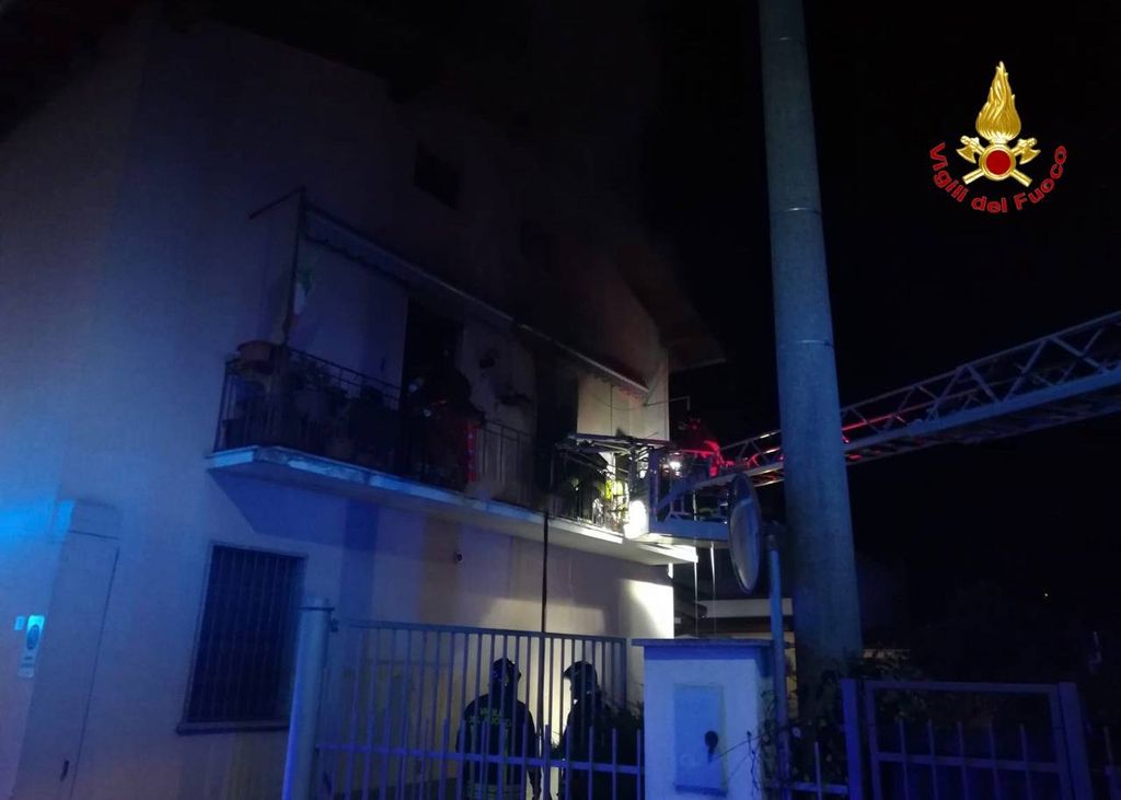 FOTO. Venegono, appartamento in fiamme nella notte: sette persone bloccate all'interno salvate dai vigili del fuoco