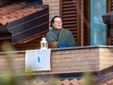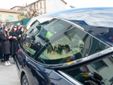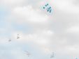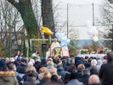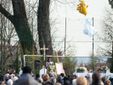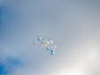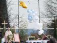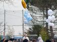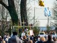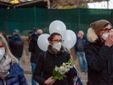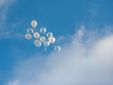 Il Pikachu in volo sulla folla attonita e commossa, accanto ai palloncini, pronto a raggiungere Daniele (foto Alessandro Galbiati)