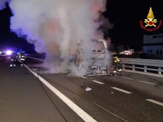 L'incendio è scoppiato sul mezzo pesante tra il bivio A8-A36 Pedemontana e Gallarate all'altezza di Cassano Magnago. Sul posto vigili del fuoco di Somma, Polstrada e un'ambulanza della Cri di Busto