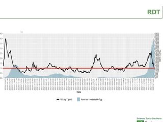 Anche l'indice Rdt, quello che rappresenta la diffusione e la contagiosità del virus, è in discesa da alcuni giorni, come testimoniato dai grafici: una circostanza che fa ben sperare che il numero dei nuovi positivi possa ora iniziare a calare.