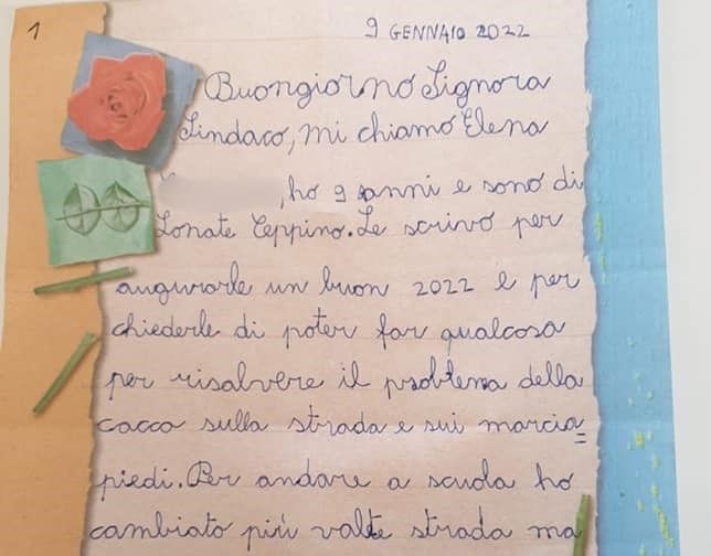 «Elena chiede più pulizia nelle strade per poter andare tranquilla a scuola, senza dover schivare gli escrementi degli animali abbandonati dai padroni per strada o sui marciapiedi» premette la prima cittadina.