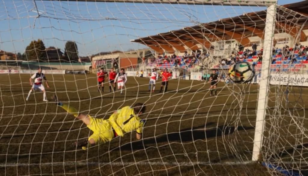 Minuto 90': comincia dall'epilogo il racconto di questa partita. Il neo acquisto Scaramuzza va via a sinistra, contatto con un difensore della Vogherese e l'arbitro che indica il dischetto. Un giallo: contatto dentro o fuori dall'area? Nessun dubbio per il direttore di gara piazzato a pochi passi: è rigore.