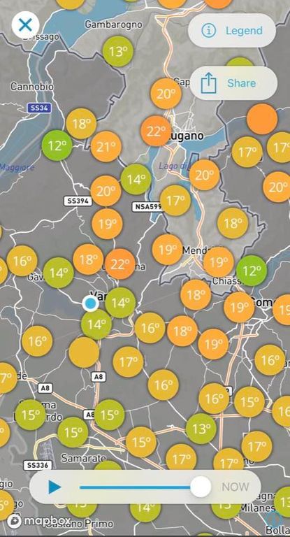 La stessa cartina con le temperature di questo pomeriggio postata da Bertoni la dice lunga: nelle città della provincia siamo attorno ai 16 gradi ma, più ci si allontana dalla pianura e più si sale, toccano e superano anche gli iperbolici 20 gradi. Dove dovrebbe fare più freddo, fa più caldo: in quest'inverno di inversione termica costante, ormai, è la regola. Per non parlare della neve, ormai un miraggio a Sud delle Alpi.
