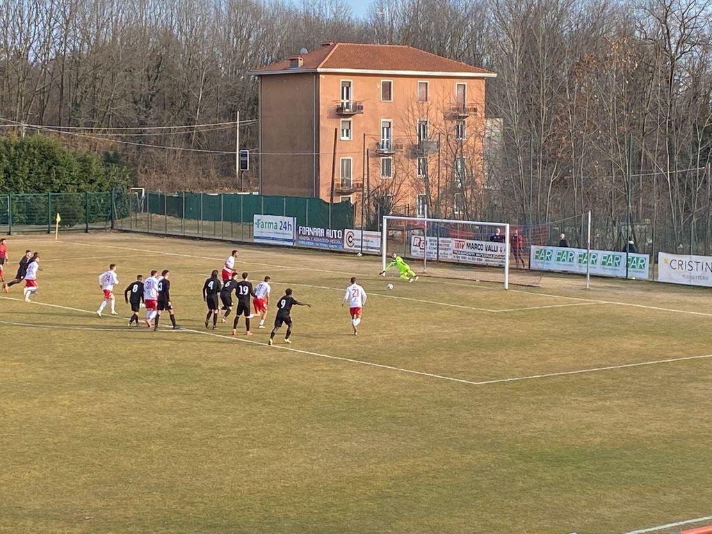 3' Sbuca ora un pallido sole nella giornata gelida di Gozzano. Punizione piemontese a 15 metri dall'area ospite