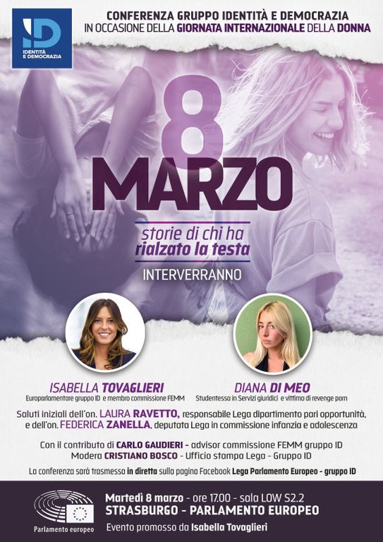 Domani, martedì 8 marzo, alle ore 17, a Strasburgo, presso la sede del Parlamento europeo, in occasione della Giornata internazionale dei diritti della donna, l’eurodeputata di Busto Arsizio Isabella Tovaglieri (Lega, gruppo ID), membro della Commissione Femm, promuove una conferenza sul tema “Storie di chi ha rialzato la testa”, per sensibilizzare l’opinione pubblica e le istituzioni europee sulla violenza di genere in rete.