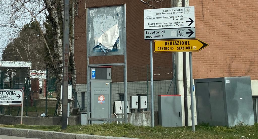 Anche a Bizzozero sono stati posti i cartelli che segnalano il percorso alternativo, che inizia passando da via Monte Generoso, per evitare di raggiungere il centro da viale Borri.