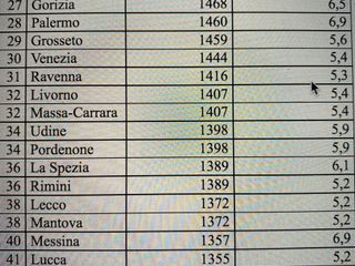Appena fuori dal podio Bologna dove si spendono mediamente 1.692 euro in più (+6%), al quinto posto Padova (+6,6% pari a +1667 euro), seguono Treviso (+6,5%, +1641 euro), Pistoia (+6,2%, +1615 euro), in ottava posizione Firenze (+5,8%, +1598 euro), poi Trieste (+6,7%, +1587 euro). Chiude la top ten delle città più salate Genova (+6,5%, 1577 euro).