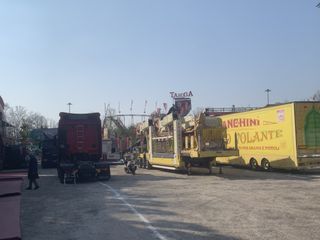 Però: belli i tempi in cui si poteva scherzare solo su quello… Ora ti guardi in giro, ammiri l’operosità delle api giostraie che spianano, montano, collaudano, allestiscono e ti accorgi che il consueto panorama di ogni primavera ora si materializza strano. Quasi nuovo.
