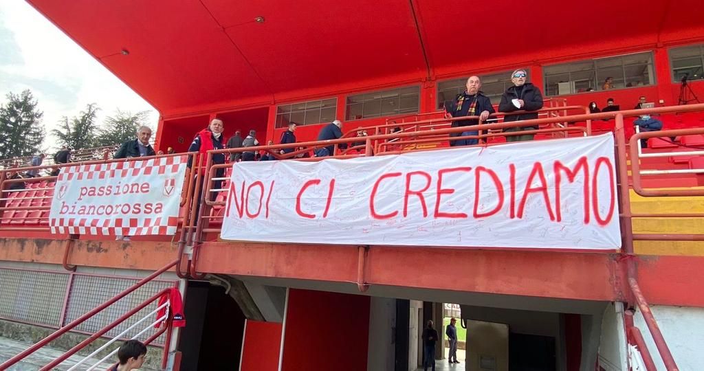 Anche la curva biancorossa è al fianco del Varese e sta incitando i ragazzi di Ezio Rossi.