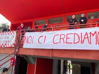 Tra poco dovrebbe parlare l'allenatore Ezio Rossi mentre alcuni ultrà sono ancora sotto la tribuna