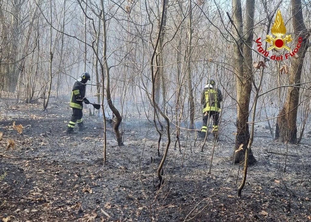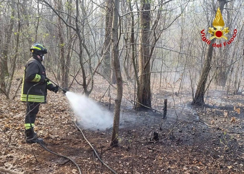 Ancora un incendio nei boschi: vigili del fuoco a Samarate. FOTO