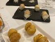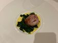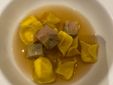 Dopo un’interessante degustazione di diverse stagionature di Grana, e quella di alcuni amuse-bouche con il Grana già protagonista indiscusso, ecco il via al menù, che ha riservato nell’ordine un antipasto di patate, Grana Padano, capesante marinate e uova di aringa, Tortellini al Grana Padano, cardamomo e foie gras, Coniglio ripieno, Grana Padano, spinacino e cumino e Cheese cake, Grana Padano e frutti rossi.